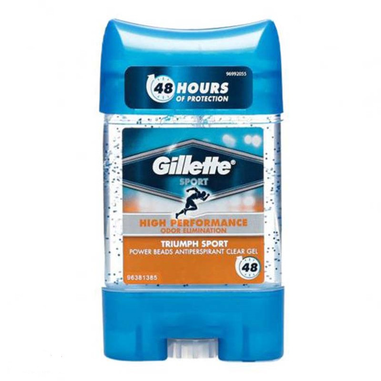 دئودورانت ژله ای دانه دار ژیلت ضد تعریق و خوشبو کننده بسیار موثر در جهت کنترل تعرق و بوی بد ناحیه زیر بغل می باشد. زیر بغل ژله ای ژیلت با کنترل چرخه باکتری های ایجاد بو در تعلیق بوی بد نقش موثری دارد. دانه های موجود در دئودورانت ژله ای ژیلت که بهTRIUMPH SPORT معروف هستد قدرت ضد تعریق مام زیر بغل ژله ای را دو چندان می کنند.